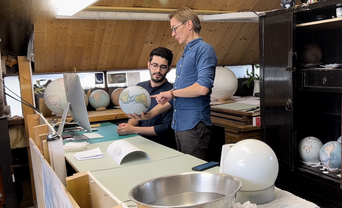 And there’s one person in England making bespoke globes by hand in a studio in London. My camera team and I visited the studios of